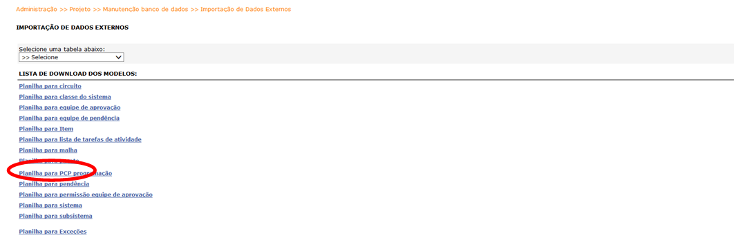 O usuário pode incluir o código do responsável pela execução preenchendo o template de importação do PCP, conforme as telas a seguir.