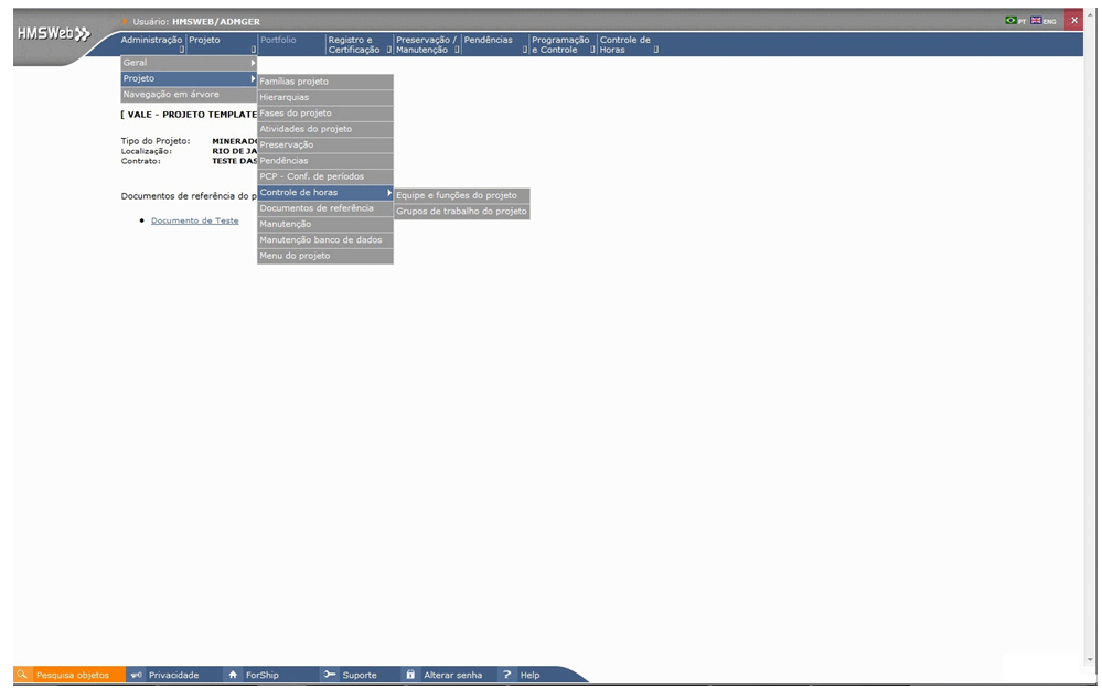 Lembre-se de que, ao criar um novo projeto, o Administrador pode selecionar um projeto base a partir do qual toda a estrutura do menu será copiada para o novo projeto. Assim, o trabalho de configuração pode ser muito reduzido, limitando-se a pequenos ajustes específicos do novo projeto.