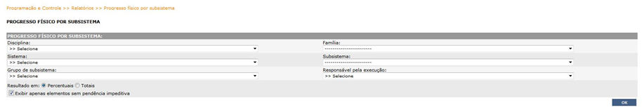 Relatório de Progresso Físico por Subsistema